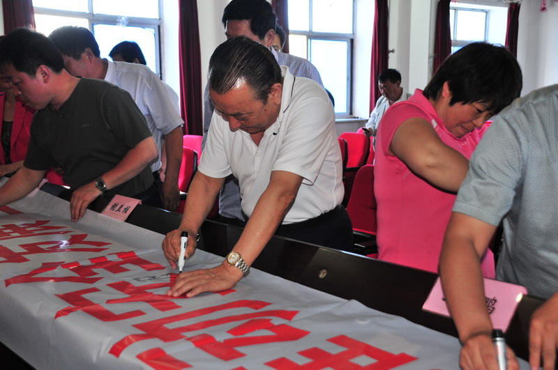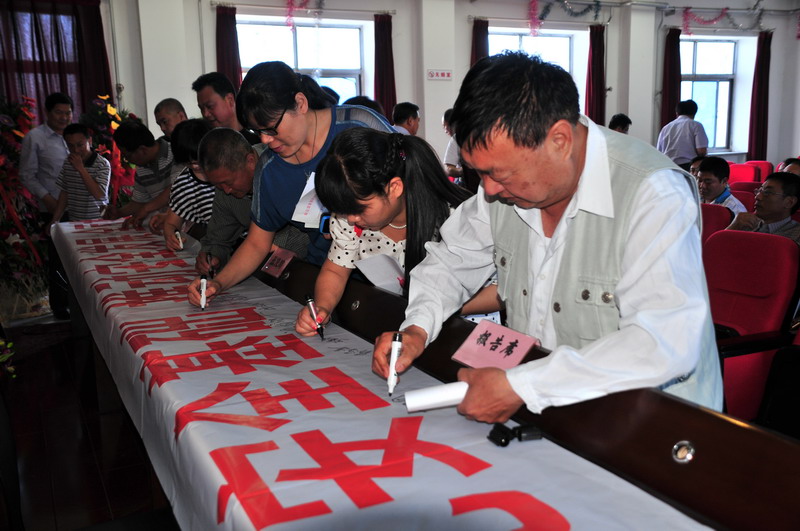 參會人員在“強化安全基礎,推動安全發展,全面推行標準化”條幅上簽字