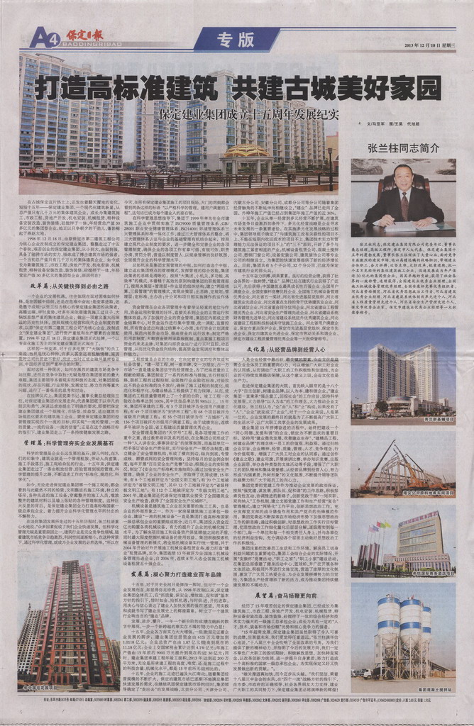 保定日報專版報道集團公司成立十五周年